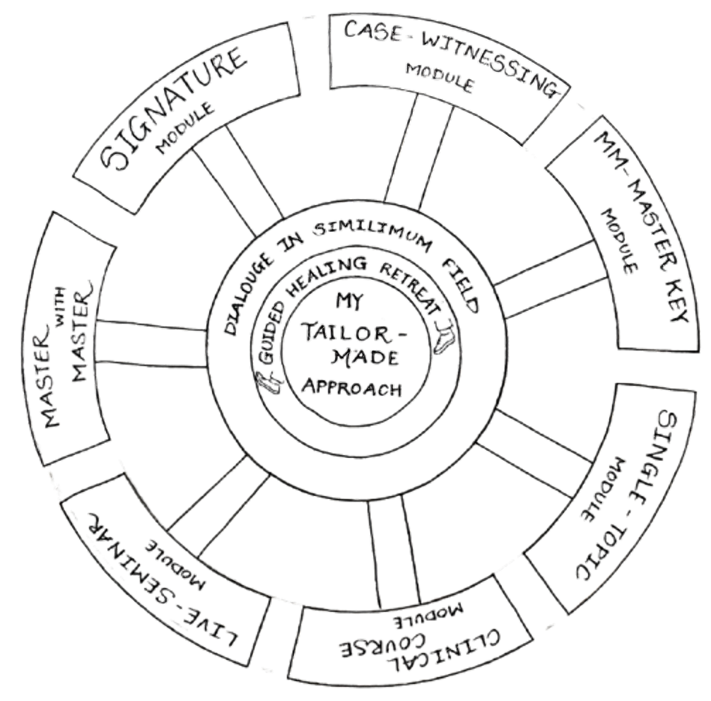 The whole signature module, case taking module, Artistic unique module of case taking (The Right Brain Approach) , Materia medica module and The Guided Healing Retreat module.
